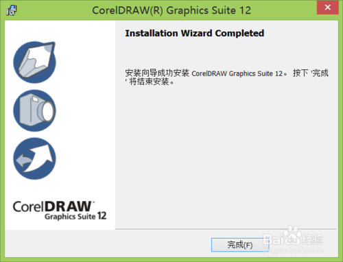 經過一段時間的等待彈出安裝完成提示對話框,這樣我們就把CDR12安裝好了,如圖所示: