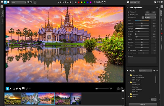 通過(guò)將修齊條與照片中的元素相互對(duì)齊或指定旋轉(zhuǎn)角度的方式旋轉(zhuǎn)扭曲圖像。所有控件可在屏幕或?qū)傩詸谥休p松訪問(wèn),可在幾分鐘內(nèi)實(shí)現(xiàn)完美效果。