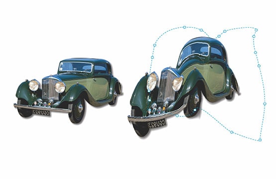 將位圖放入封套并拖動(dòng)其節(jié)點(diǎn),以交互方式調(diào)整位圖形狀。使用封套預(yù)置參數(shù)值或從頭創(chuàng)建自定義封套,快速無(wú)縫地將位圖混合到插圖中。