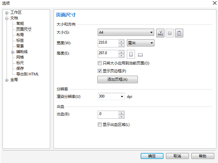 出血:可以設(shè)置頁(yè)面四周的出血寬度。