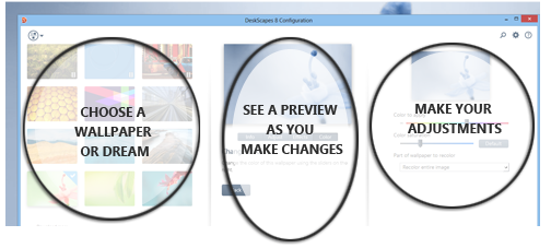 使用簡單的滑塊DeskScapes可幫助您將新顏色應(yīng)用于壁紙。 顏色自定義可應(yīng)用于整個(gè)圖像或僅應(yīng)用于選擇顏色。