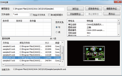 屬性條件:顯示標(biāo)題欄中信息條件,指定條件之間的邏輯關(guān)系(與和或)。標(biāo)題欄信息條件可以通過(guò)【編輯條件】激活編輯條件對(duì)話框編輯。