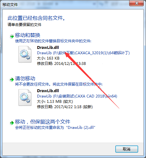 3、將破解補(bǔ)丁文件夾中的DrawLib.dll程序,復(fù)制到打開(kāi)的CAXACAD電子圖板2018軟件的根目錄中
