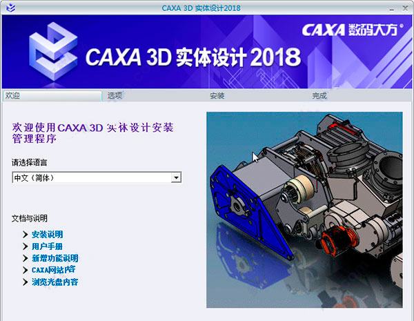 3、選擇中文簡(jiǎn)體,還可以查看安裝說(shuō)明,用戶手冊(cè),新增功能等;