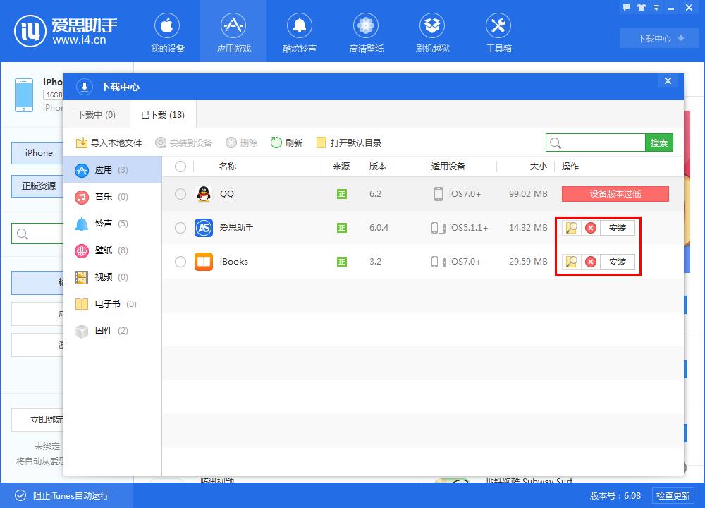 三、也可以從愛思助手界面右上角,進入“下載中心”進行安裝。