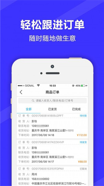 2、待接單新增短信、電話提醒,不錯(cuò)過(guò)每一筆訂單。
