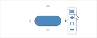 2.將指針放在形狀上,以便顯示藍(lán)色的“自動連接”箭頭。