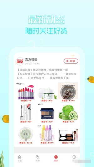 1、新增動態(tài),一鍵分享好貨給好友,省錢更方便。