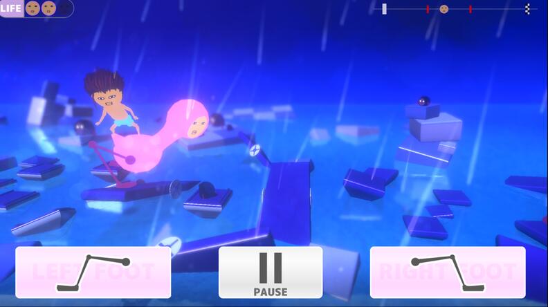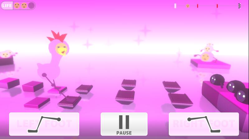 點(diǎn)擊對(duì)應(yīng)按鈕,讓妖精邁部向前,只要走到終點(diǎn)即通關(guān);【右腳按鍵】點(diǎn)擊的話右腳將向前邁步;