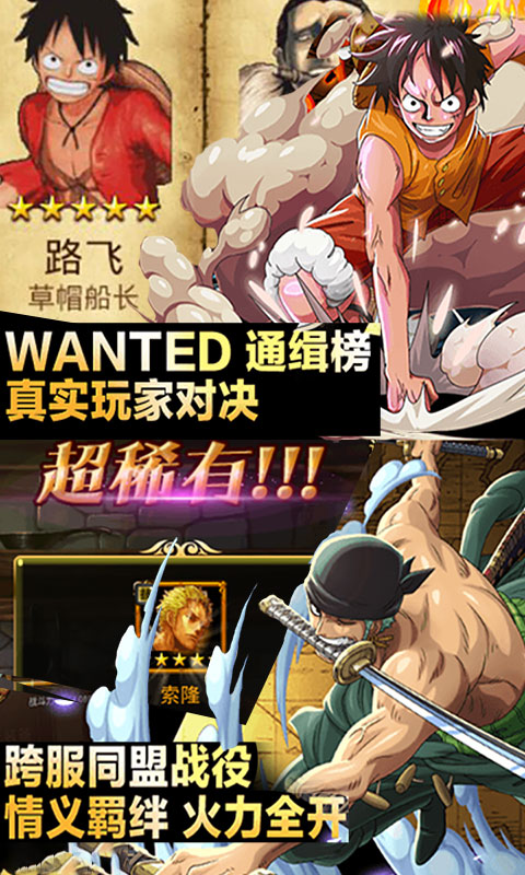經(jīng)典的人物、全新的劇情,豐富的游戲玩法;超大真實(shí)刺激的180個特色地圖等你航海冒險;