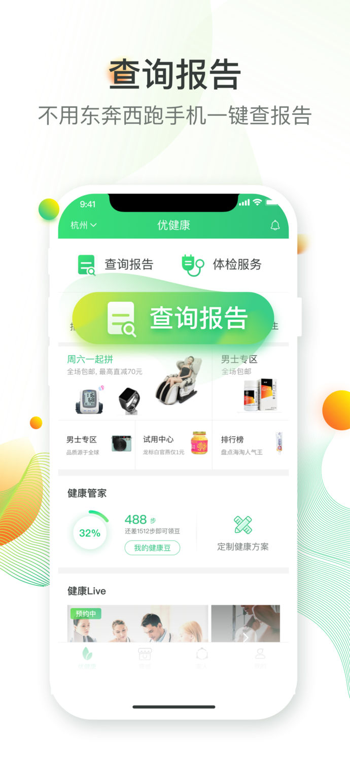 家庭健康檔案一個賬號全管理,關(guān)注全家健康狀況;購買體檢送健康,購買老人專屬體檢套餐,孝敬父母;
