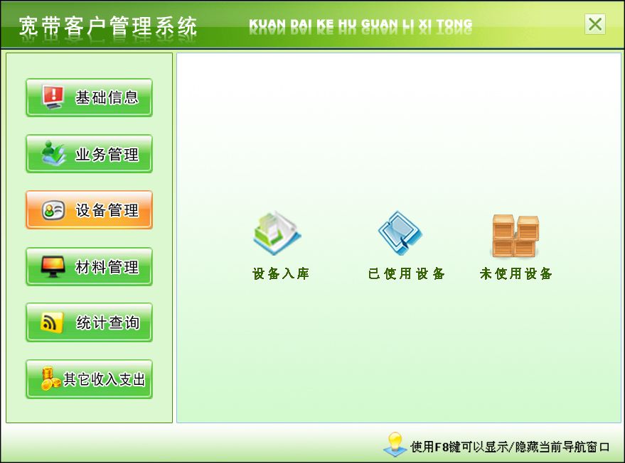 三、設(shè)備管理:設(shè)備入庫、已使用設(shè)備、未使用設(shè)備