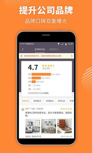 惠裝網(wǎng)惠裝商家app每天在各個渠道大力推廣,準確定位裝修業(yè)主引導進店,讓您的公司品牌和口碑雙重曝光!