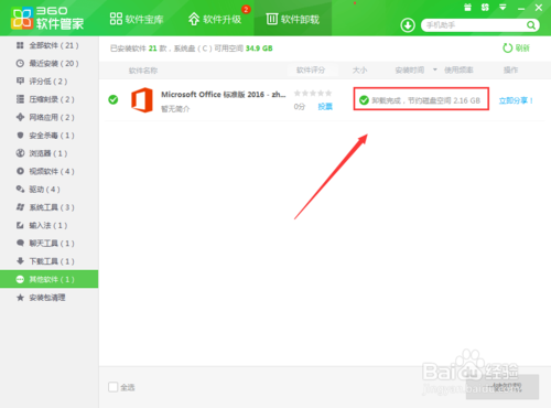 8、最后我們就可以成功的刪除掉這個軟件了,一般來說,辦公軟件基本上都比較難刪除的,我們使用這種辦法刪除比較容易的,也不需要去網(wǎng)上下載上面刪除軟件,所以大家需要刪除的可以使用這種辦法喲。