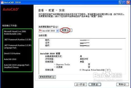 4、在接下來(lái)的“配置”界面中,點(diǎn)擊“配置”按鈕可按需自定義安裝程序: