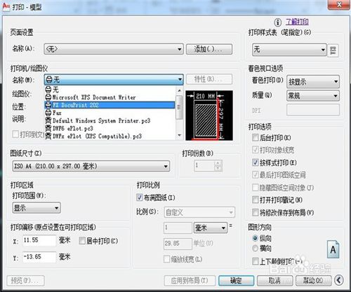 5、在"打印-模型"窗口中,在“圖紙尺寸” 里面找到我們需要打印的圖紙大小。