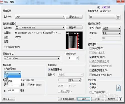 6、在"打印-模型"窗口中,在右上角的“打印機(jī)樣式表”中找到適合的打印樣式,在“打印范圍”中找到“窗口”,這時(shí)候就可以窗口選擇打印的圖紙。