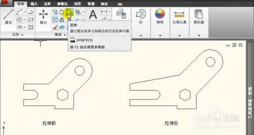 4、拉伸方法是,選擇拉伸圖標(biāo)。
