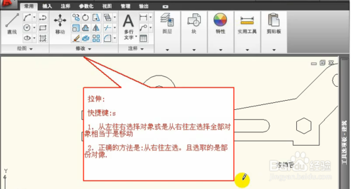 6、點(diǎn)選部分對(duì)象后,按空格鍵,然后點(diǎn)擊想要拉伸部位拉伸即可。