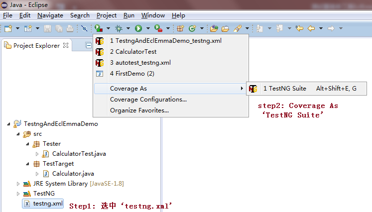 下面通過項(xiàng)目介紹如何在使用了TestNG測試框架的項(xiàng)目中的使用EclEmma測試覆蓋率1.創(chuàng)建項(xiàng)目