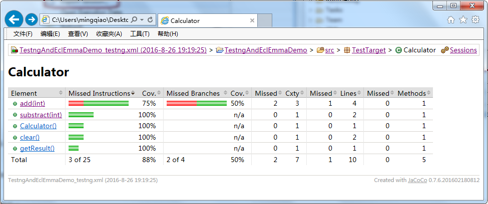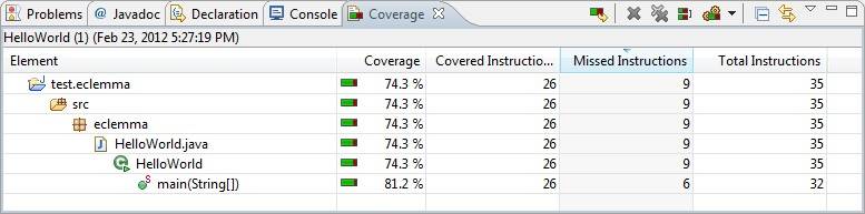 覆蓋率概述:覆蓋率視圖列出了Java項(xiàng)目的覆蓋率總結(jié),允許向方法層次深入。