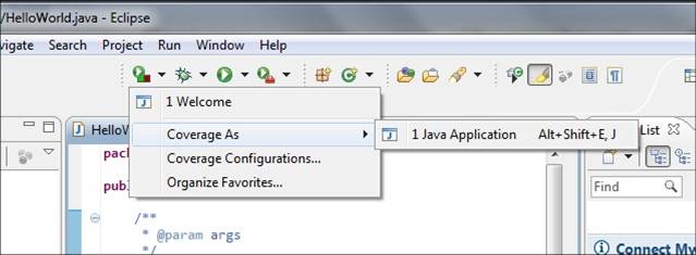 clEmma將所謂的啟動模式添加到Eclipse工作臺。它被稱為覆蓋模式,其工作方式與現(xiàn)有的運(yùn)行和調(diào)試模式完全相同。覆蓋啟動模式可以從Run菜單或workbench的工具欄中激活:啟動工具欄