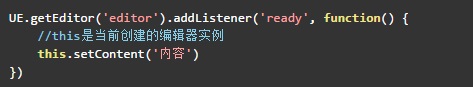 確實這樣寫也能達到效果,但這樣創(chuàng)建有個小問題。如果的這段代碼是用在第一次創(chuàng)建時就沒有問題。但如果編輯器已經(jīng)創(chuàng)建,你需要再次賦值,想使用同一段代碼,這時,這里的事件ready是不會觸發(fā)的。但你調(diào)用接口ready注入你的操作,這種方式,會判斷如果你的編輯器已經(jīng)初始化完成了,那ready將會自動加載注入的內(nèi)容,如果還沒有初始化結(jié)束,它會自己注冊ready事件,當(dāng)完成初始化后再掉起自己。所以建議開發(fā)者使用ready接口作為初始化時注入操作。