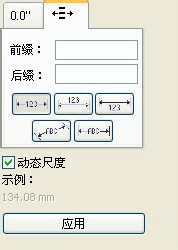 3、這時尺寸是無法修改的,在這里把“動態(tài)尺度”前的勾去掉,點(diǎn)擊應(yīng)用就可以修改了