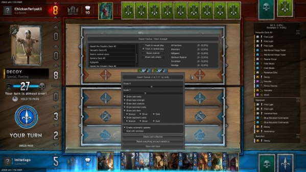 我的卡組:Gwent Tracker會自動導入已保存的卡組,并顯示在此處。