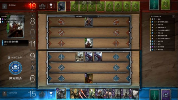 這是現(xiàn)版本游戲中的默認界面,左側為對手出的牌,右側為己方牌庫。大部分框架都可以拖動。