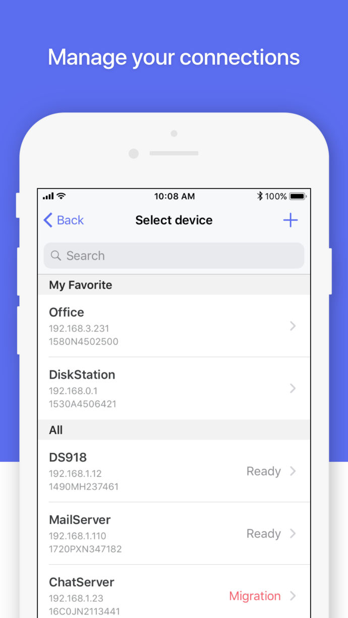 群暉管家app讓您可以設(shè)置和管理您的 Synology NAS、向您發(fā)送 NAS 相關(guān)通知并帶領(lǐng)您認(rèn)識(shí) Synology 應(yīng)用程序。可以直接從手機(jī)訪問(wèn)所有這些功能,因此通過(guò)群暉管家可告別復(fù)雜的設(shè)置和管理*您必須有 Synology NAS 才能運(yùn)行此應(yīng)用程序