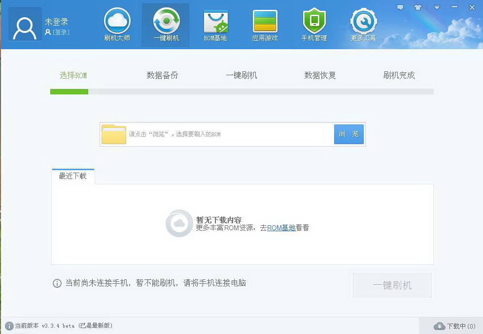 7、等待系統(tǒng)完成檢測。添加你下載的ROM,開始傻瓜式刷機之旅吧。如下圖所示