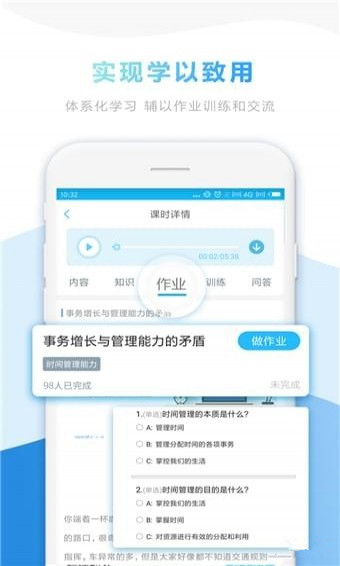 【學(xué)以致用】:提供配合課程的案例、作業(yè)、訓(xùn)練和任務(wù),問答與社區(qū)互動(dòng),我們的目標(biāo)是幫助用戶獲取知識(shí)并轉(zhuǎn)化為能力,而非單純的提供知識(shí);