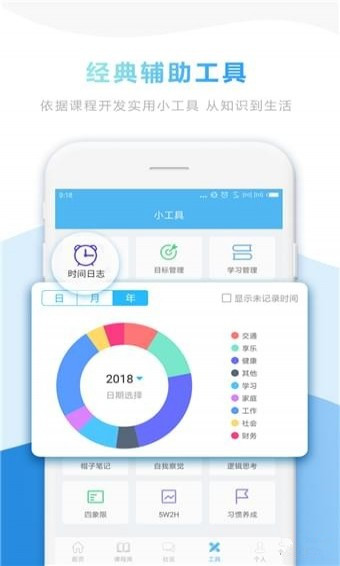 工具庫:包含時(shí)間日志、目標(biāo)管理、學(xué)習(xí)管理、能力測(cè)評(píng)、我的簡歷、人際關(guān)系、帽子筆記、自我察覺、邏輯思考、四象限(含SWOT分析)、5W2H和習(xí)慣養(yǎng)成;