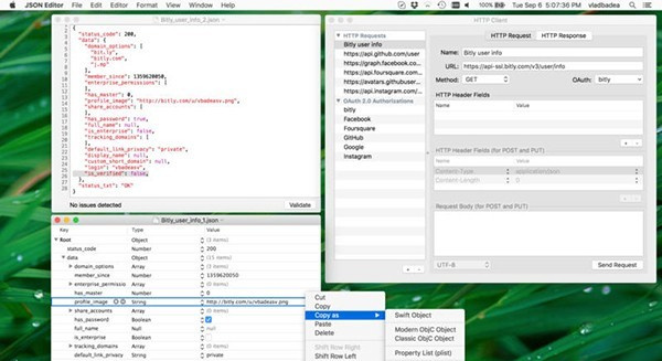 JSON Editor Mac版是一個(gè)簡(jiǎn)單、輕量級(jí)的macOS開(kāi)發(fā)工具,旨在幫助用戶使用Mac閱讀、修改和驗(yàn)證JSON文檔。JSON Editor Mac版內(nèi)置且簡(jiǎn)單的使用HTTP客戶端,支持多種類型的請(qǐng)求。此外,JSON編輯器附帶了一個(gè)HTTP客戶端實(shí)用程序,這將使您很容易為您選擇的域運(yùn)行各種各樣的HTTP請(qǐng)求。盡管JSON Editor Mac版的主要目標(biāo)是幫助開(kāi)發(fā)人員從web服務(wù)器下載JSON格式的內(nèi)容,但這個(gè)HTTP客戶機(jī)也可以用于執(zhí)行其他類型的請(qǐng)求,例如PUT、GET、POST、HEAD和DELETE。