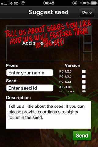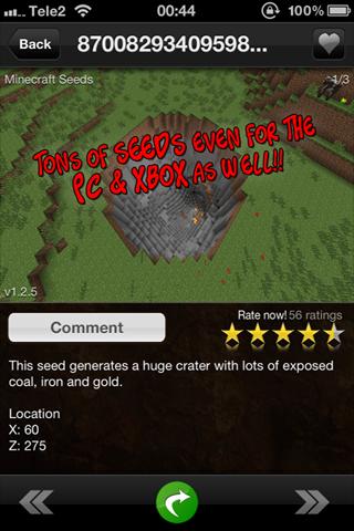 《我的世界種子 Minecraft Seeds Pro》是一款《我的世界 Minecraft》的游戲工具。用這款工具你可以輕松找到熱門的種子(Seeds),去新的地圖上挖掘快樂。MC的世界是隨機(jī)生成的,生成的原理是基于Seed,在選擇創(chuàng)建一個(gè)新的世界之后,會(huì)隨機(jī)生成一段代碼,之后所有世界內(nèi)地形的生成都會(huì)基于這段代碼,而這段代碼就是種子(Seed)。人們可以通過分享自己的種子,把自己創(chuàng)造的世界分享出去。而這個(gè)工具則是讓玩家輕松去獲取世界各地優(yōu)秀的種子