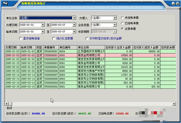 5.往來對(duì)帳 : 用于匯總核對(duì)往來單位的應(yīng)收款,已收款,應(yīng)付款和已付款。支持部分結(jié)帳和批結(jié)。