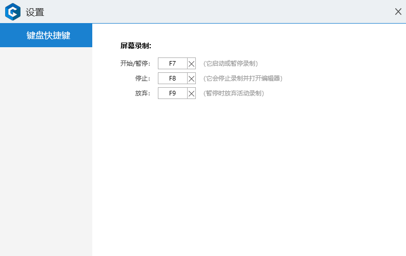 點(diǎn)擊「設(shè)置」按鈕,可以設(shè)置屏幕錄制的鍵盤快捷鍵。