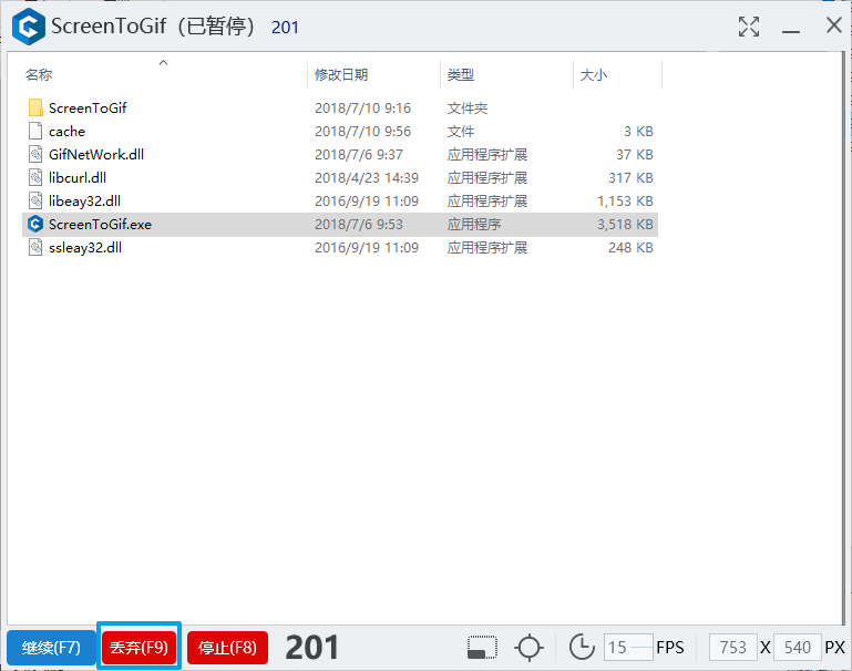 暫停屏幕錄制后,點(diǎn)擊「丟棄」按鈕可以丟棄此前的屏幕錄制。