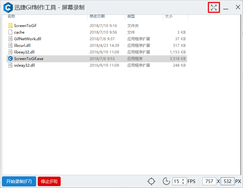 點(diǎn)擊右上角的「全屏」按鈕可以屏幕錄制窗口設(shè)置為全屏。
