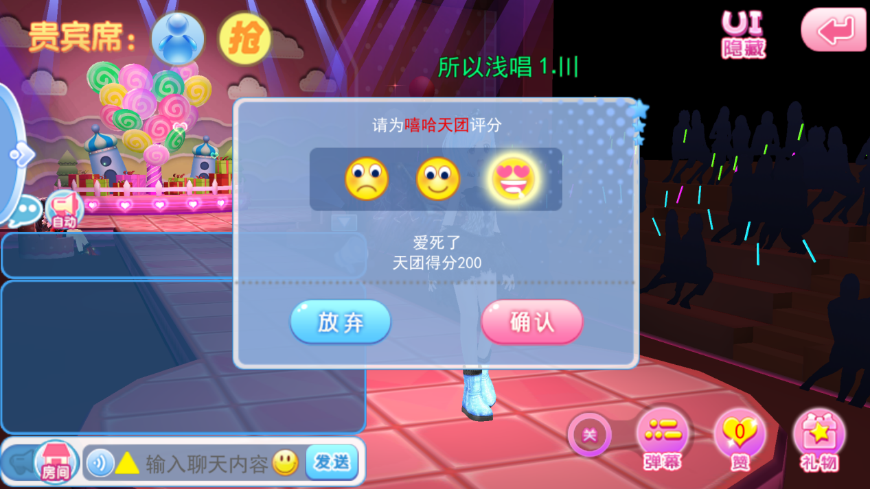 2,T臺秀中設(shè)有貴賓席,可通過搶座的方式將自己的人物展現(xiàn)在本場秀的貴賓席并有為本場秀評分的權(quán)利~