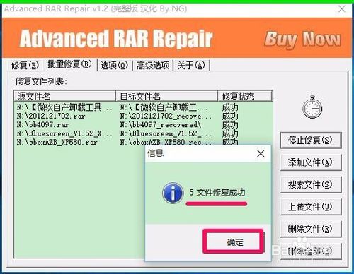 8、顯示信息:5文件修復(fù)成功,點擊:確定;