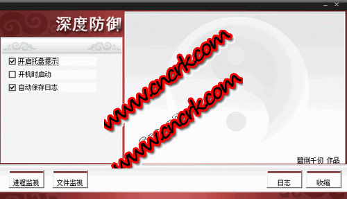 深度防御 V1.2 簡(jiǎn)體中文綠色免費(fèi)版 深度防御包括文件監(jiān)視和進(jìn)程監(jiān)視,其中文件監(jiān)視可以監(jiān)護(hù)用戶電腦包括新建文件,刪除文件、重命名、改變文件屬性、設(shè)置共享、文件關(guān)聯(lián)等等事件,讓病毒現(xiàn)身于用戶眼前。進(jìn)程監(jiān)視實(shí)時(shí)系統(tǒng)的進(jìn)程,并根據(jù)需要對(duì)這些進(jìn)程的開啟和關(guān)閉做出提示,使病毒已啟動(dòng)即被用戶知曉。