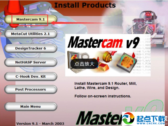 3.打開安裝的子模塊,然后點(diǎn)擊mastercam9.1
