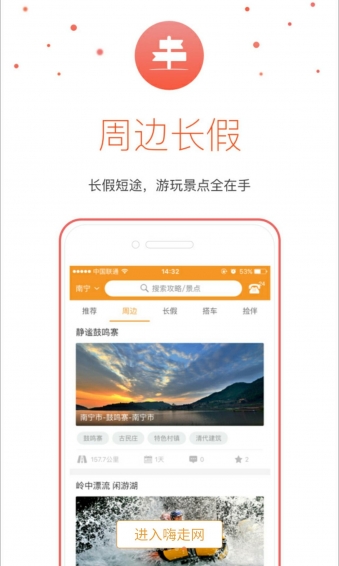 嗨走自駕app是一款為廣大喜歡自駕游的人群設(shè)計(jì)的手機(jī)應(yīng)用軟件。嗨走自駕安卓版不僅可以實(shí)時(shí)導(dǎo)航,還能預(yù)定景區(qū)門票和酒店。嗨走自駕為用戶解決路上的一切問題。