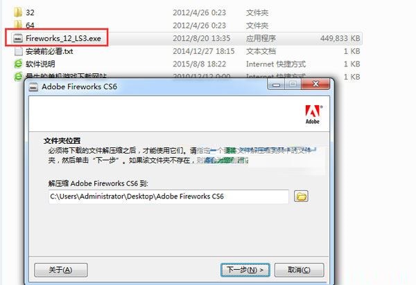 1、解壓文件,雙擊“Fireworks_12_LS3.exe”運(yùn)行安裝程序,選擇目錄解壓。