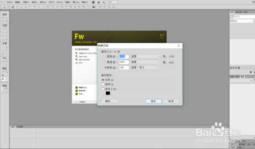 通過以上設(shè)置完成Fireworks畫布的新建操作,畫布的大小像素設(shè)置可根據(jù)電腦屏幕進(jìn)行約束比例設(shè)置,不得隨意設(shè)置。