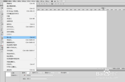 首先,打開fireworks,新建空白畫布,再在文件欄中選擇“導(dǎo)入”在畫布上拖動(dòng)鼠標(biāo)導(dǎo)入需要進(jìn)行水印處理的圖片。