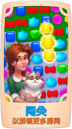過(guò)關(guān)后所獲得的星星也可用來(lái)購(gòu)買(mǎi)新的家具、設(shè)備和三消游戲增強(qiáng)道具。