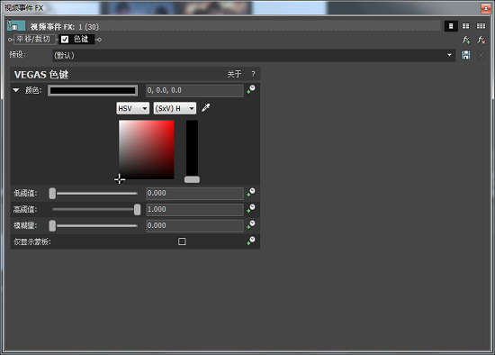 點(diǎn)擊遮罩素材上的“fx”,進(jìn)入視頻特效選擇界面。點(diǎn)擊選擇“VEGAS 反轉(zhuǎn)”,將遮罩的黑白反轉(zhuǎn),也可以不添加反轉(zhuǎn)效果,直接進(jìn)行下一步添加“VEGAS 色鍵”視頻FX,調(diào)整顏色為“黑色”,如下圖所示。不知道在哪有遮罩素材,可以點(diǎn)擊下載免費(fèi)動(dòng)態(tài)遮罩素材。
